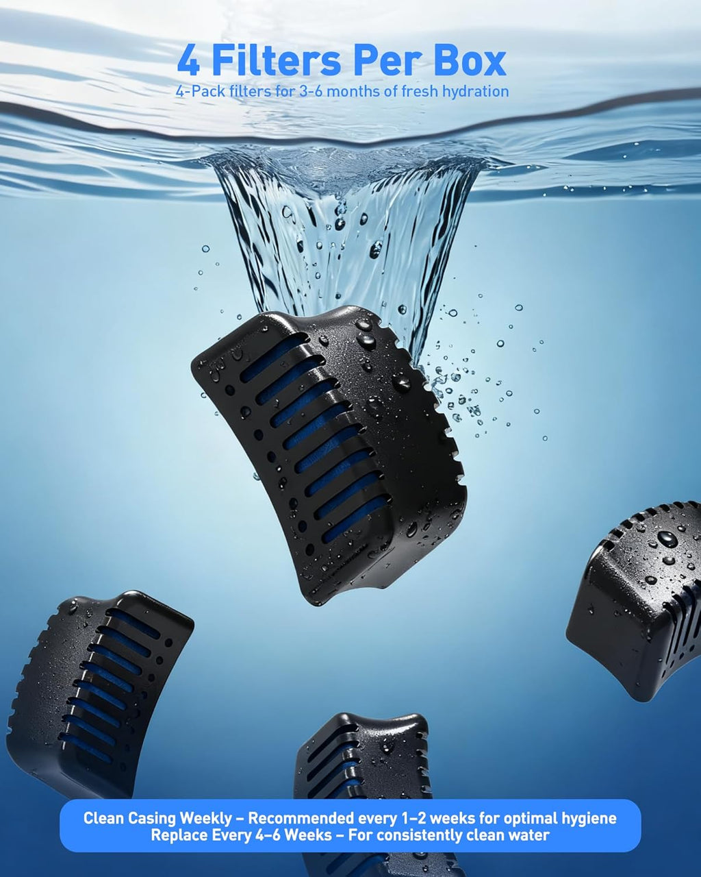 • 【Easy Maintenance & Use】Rinse the filter under running water before first use. Replace every 4–6 weeks (more frequently for multi-pet homes). Clean the dispenser filter casing every 1–2 weeks for maintain optimal performance.