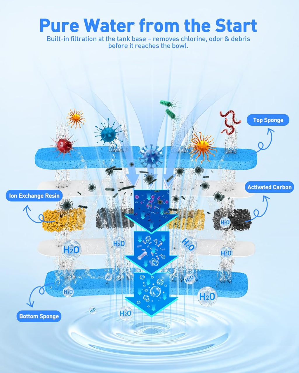 • 【Source Filtration at the Base】Unlike ordinary filters, the D2416B automatic water feeder uses built-in base filtration, purifying water before it even reaches the bowl—so every sip is clean from the source.